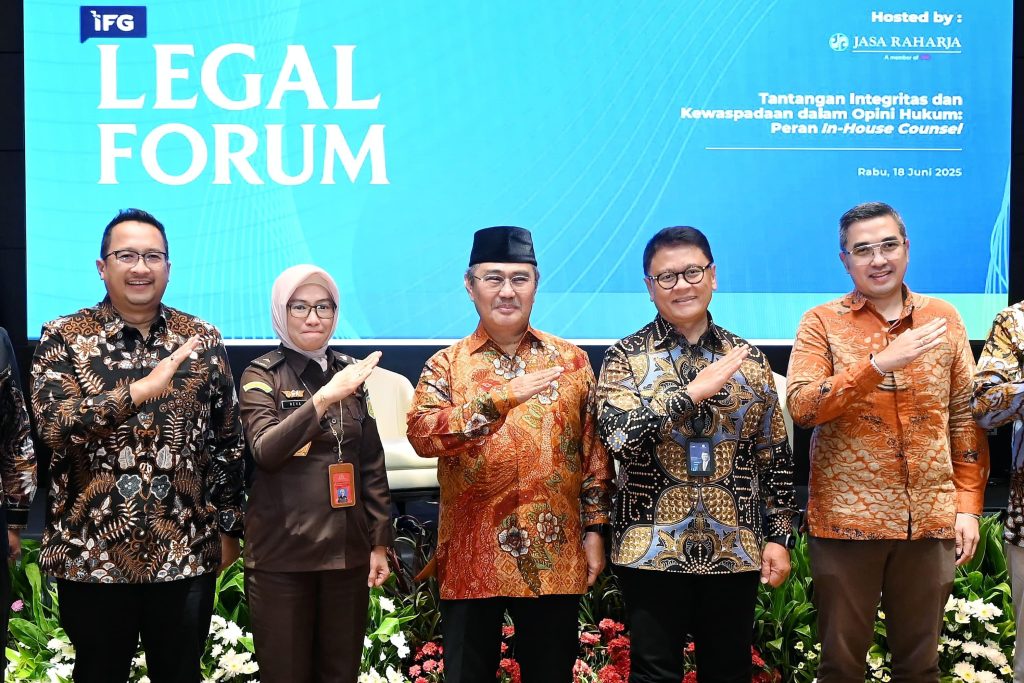PT Jasa Raharja kembali menyelenggarakan IFG Legal Forum, forum diskusi strategis tahunan yang menghadirkan para praktisi hukum internal dari seluruh entitas anggota IFG Holding. Acara ini berlangsung pada Rabu, 18 Juni 2025 di Kantor Pusat Jasa Raharja, Jakarta, dengan mengangkat tema ‘Tantangan Integritas dan Kewaspadaan dalam Opini Hukum: Peran In-House Counsel’.