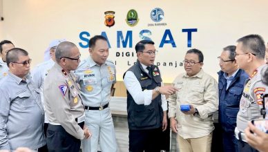 Direktur Utama Jasa Raharja Rivan A. Purwantono bersama Gubernur Jawa Barat Ridwan Kamil, Kakorlantas Polri Irjen Pol. Firman Santyabudi, dan Kepala Bapenda Jabar